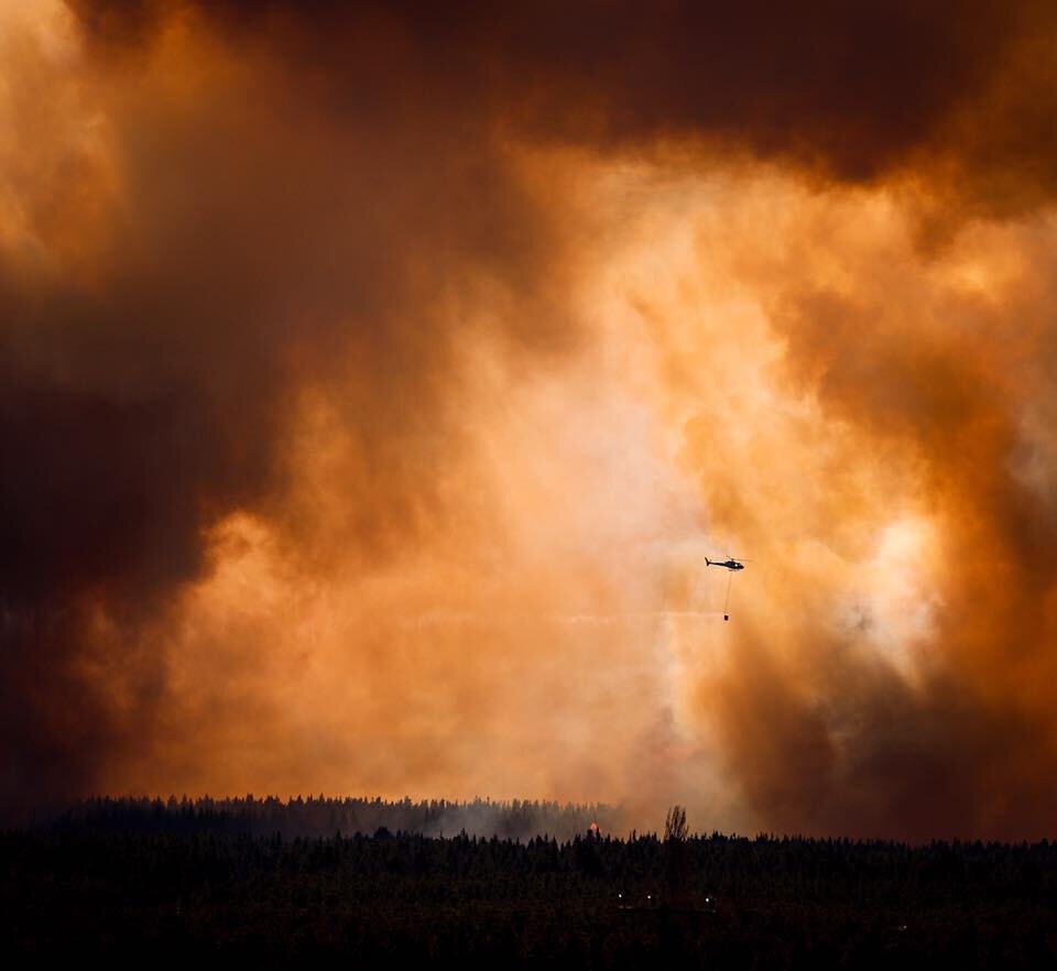 There are now 14 helicopters and two aircraft working to contain the blaze being fanned by strong winds.