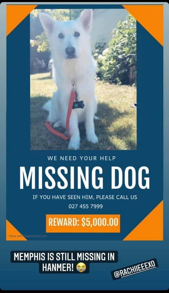 Owner Rachel Hyett said “he was spooked and ran into the forest up the top of Clarence Valley Road, Hanmer.”