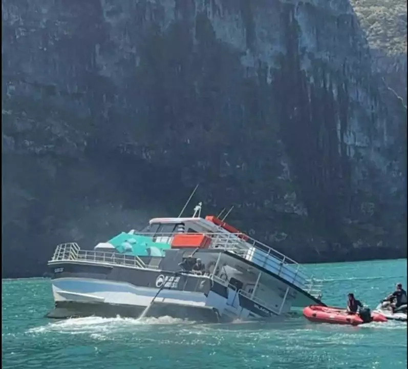 “There were 38 passengers plus 3 crew on board the vessel and all were safely evacuated and taken back to the Main Wharf, Akaroa. There are no injuries to report.