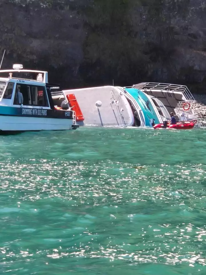 A Black Cat Cruise boat has capsized off Akaroa this afternoon, prompting the evacuation of all passengers.