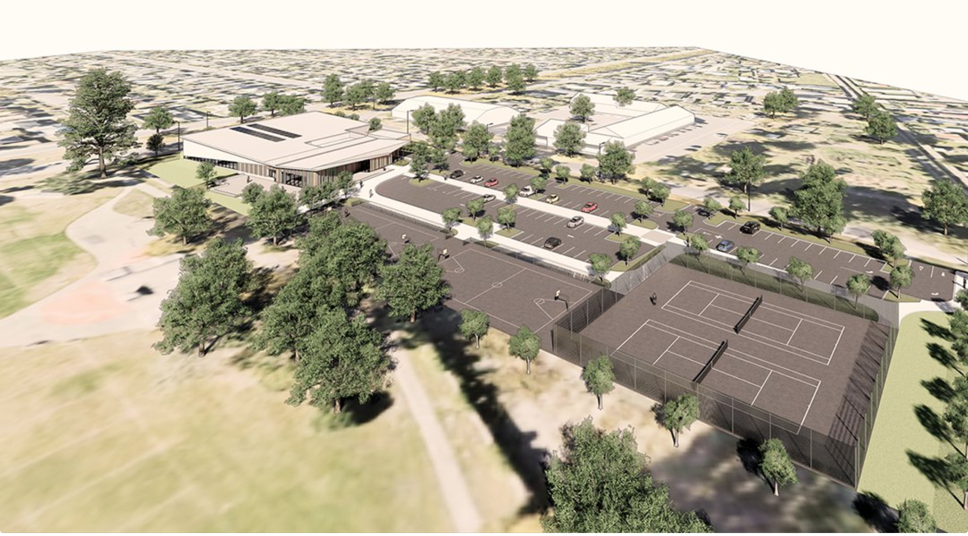 The outdoor community space at Te Pou Toetoe features a gathering area, picnic tables, tennis and multi-use courts, cycle stands, parking and plenty of open areas for all ages to enjoy.