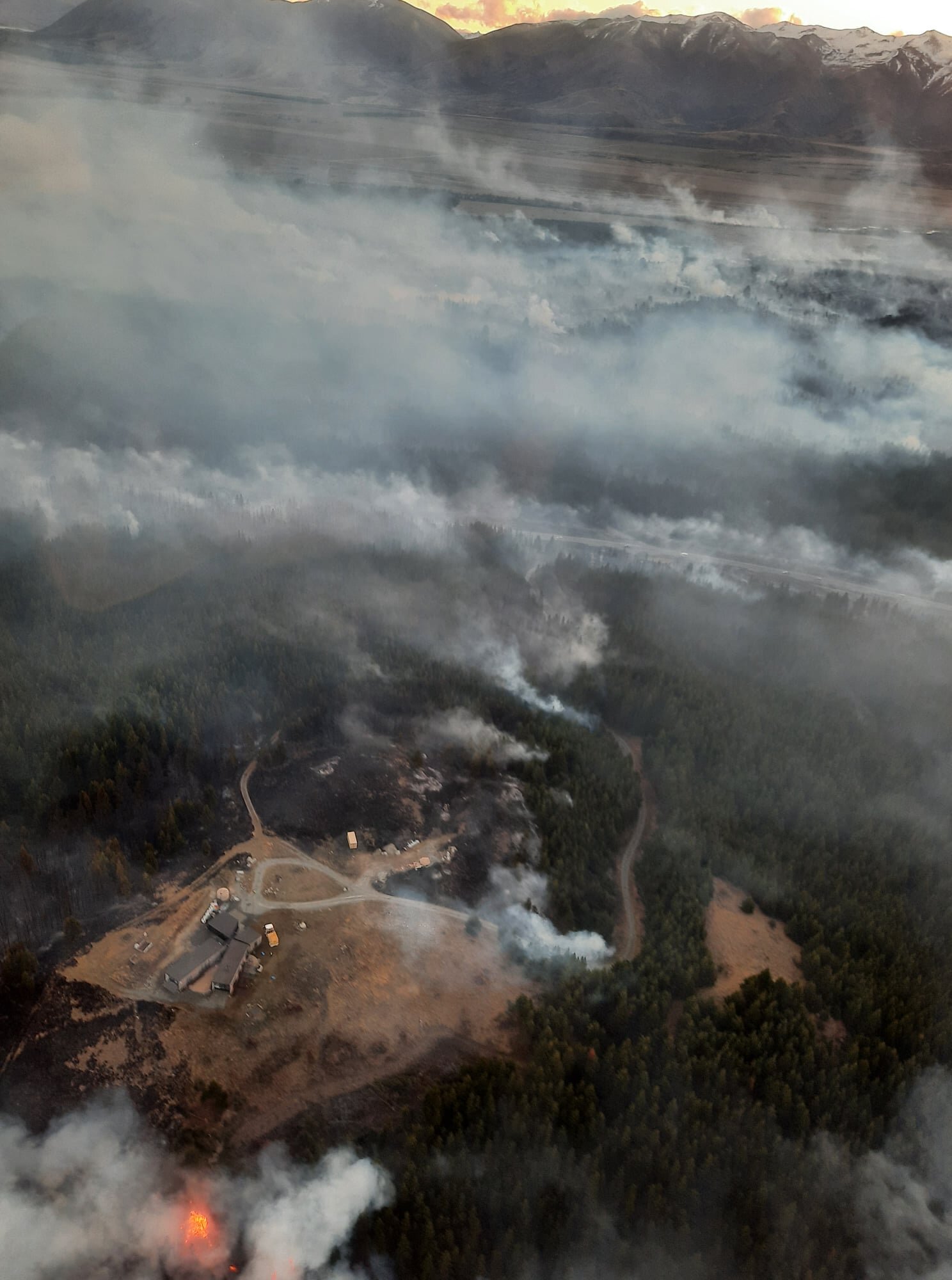Author and Mackenzie resident Mary Hobbs said “all of the homes in the face of the fire would have already been destroyed without the tireless efforts of dedicated helicopter pilots dumping water from Lake Pukaki onto all buildings in the area.”