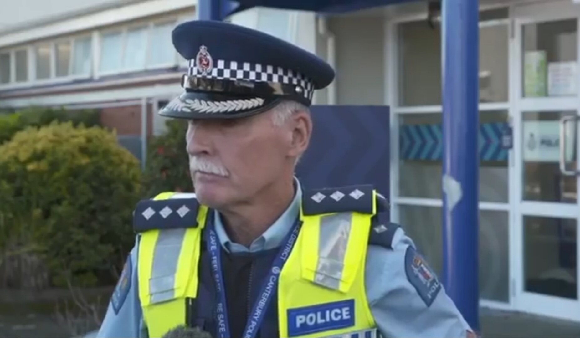 Area Commander Inspector David Gaskin speaking to media about the crash in Ashburton this morning.