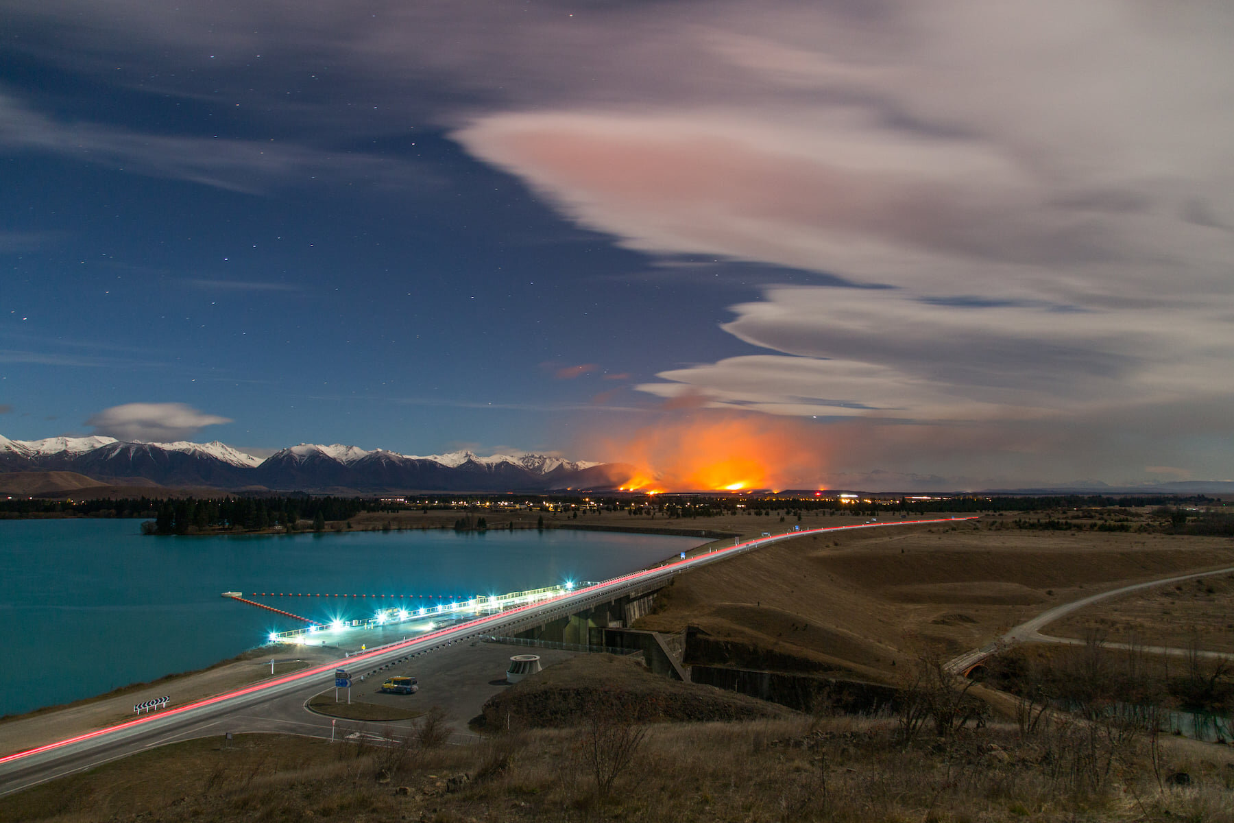 Pukaki resident James Leslie told Newstalk ZB Christchurch his home is 10 kilometres from the fire but he could still see the large flames.