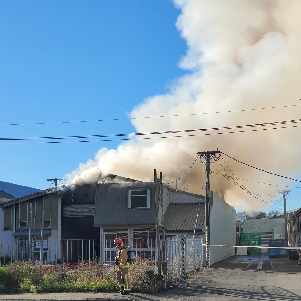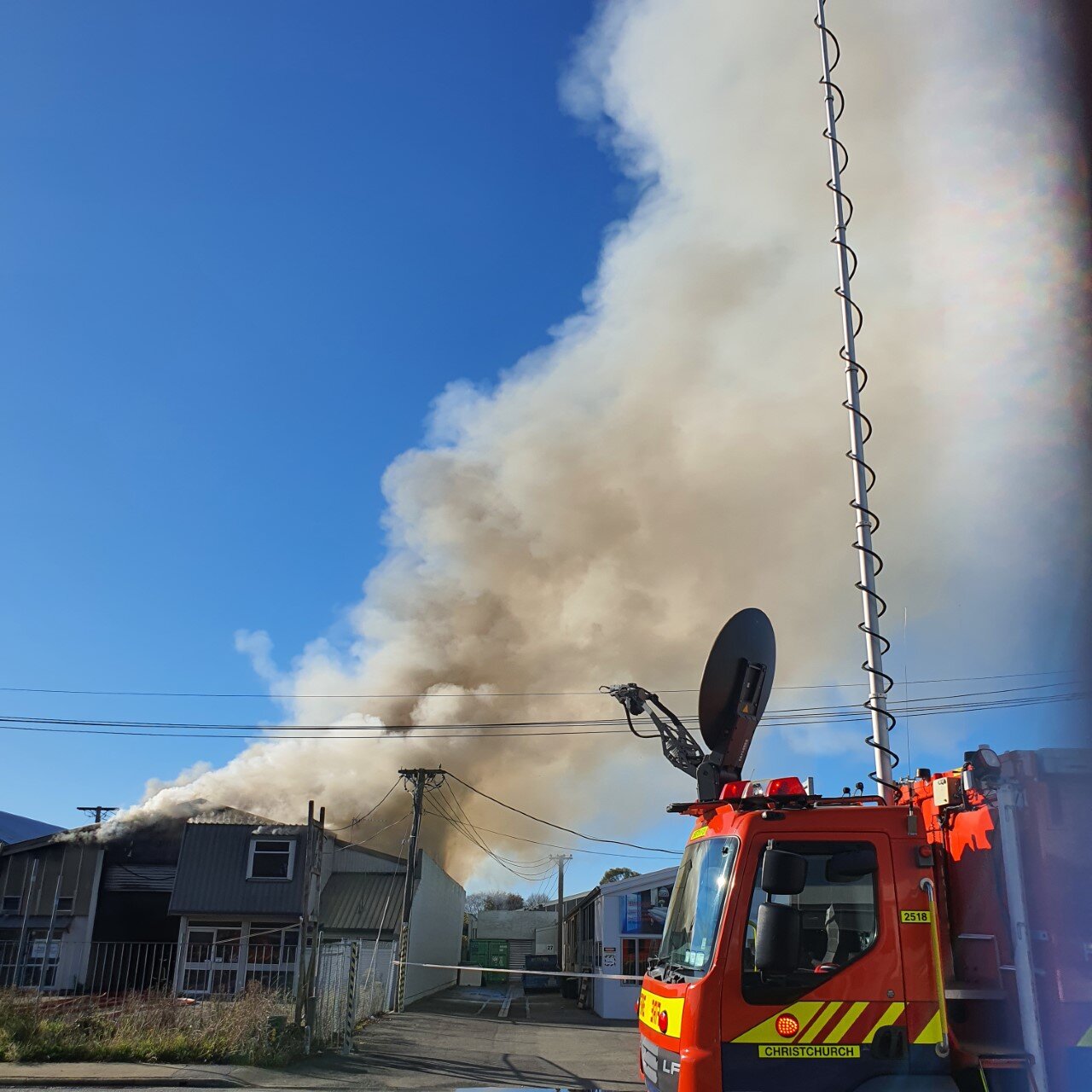 A Christchurch Fire Command Unit was set up on the road, because of the size of the blaze and the busy location near Blenheim Road.