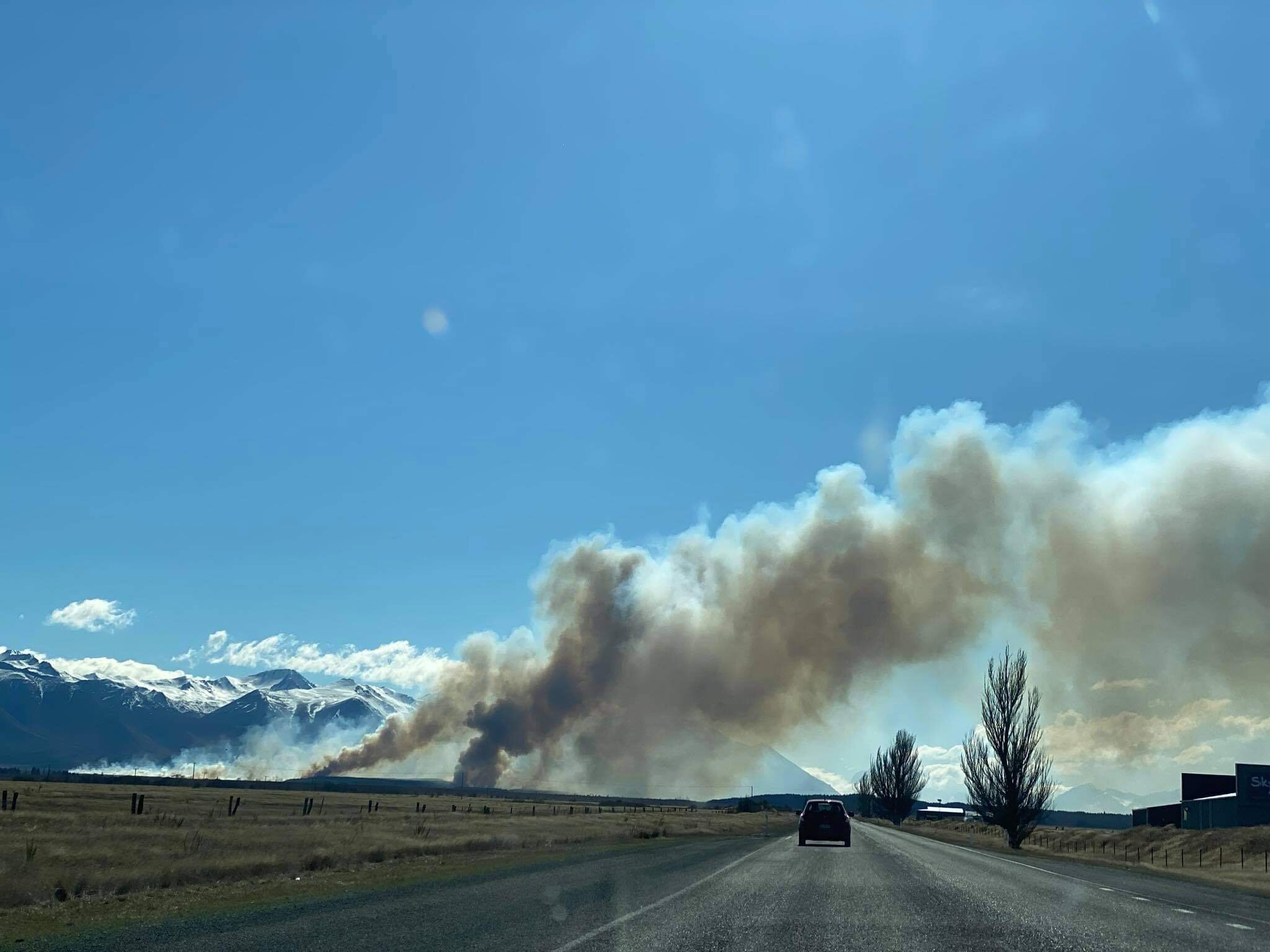 Fire crews from Burkes Pass, Twizel, Omarama, Otematata, Lake Tekapo, and Timaru are battling the blaze.