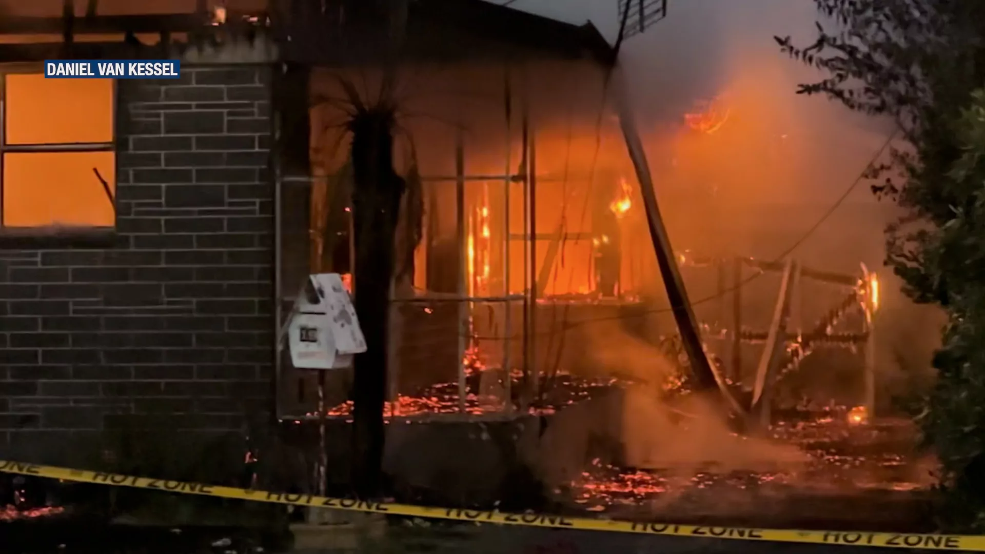 Smoke and flames were visible from surrounding streets as firefighters worked to bring the fire under control.