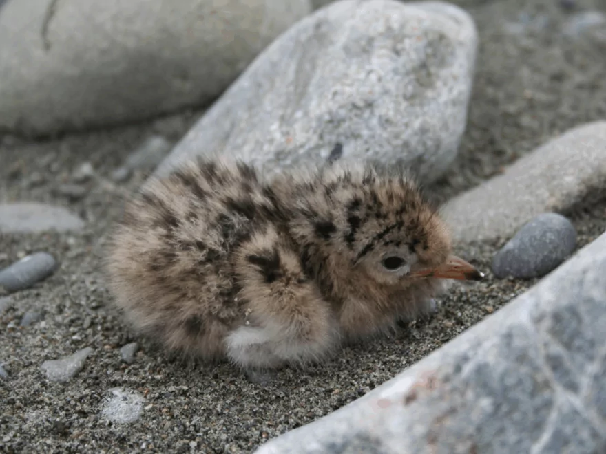 Black-fronted tern chick, credit Jack van Hal, DOC